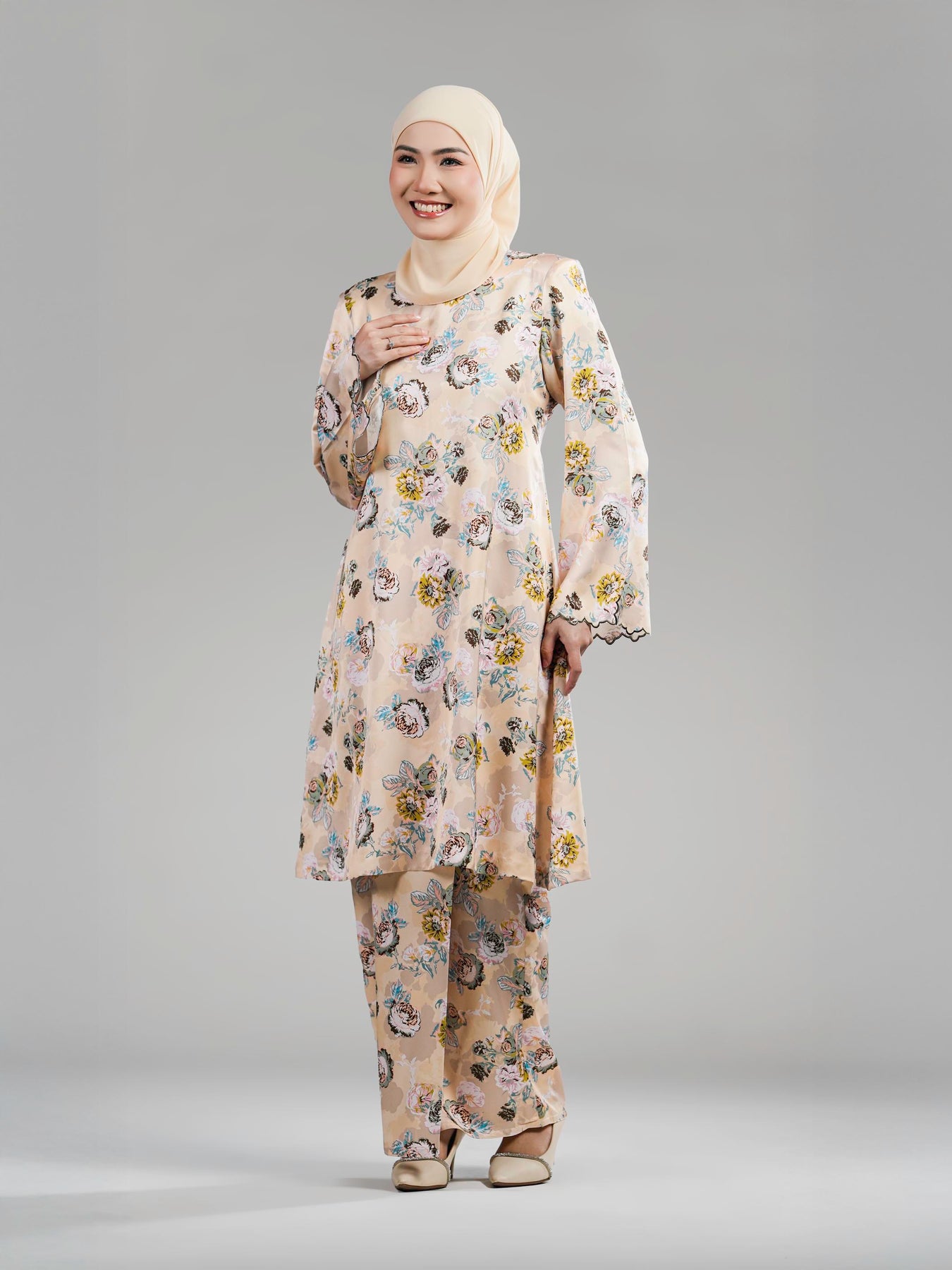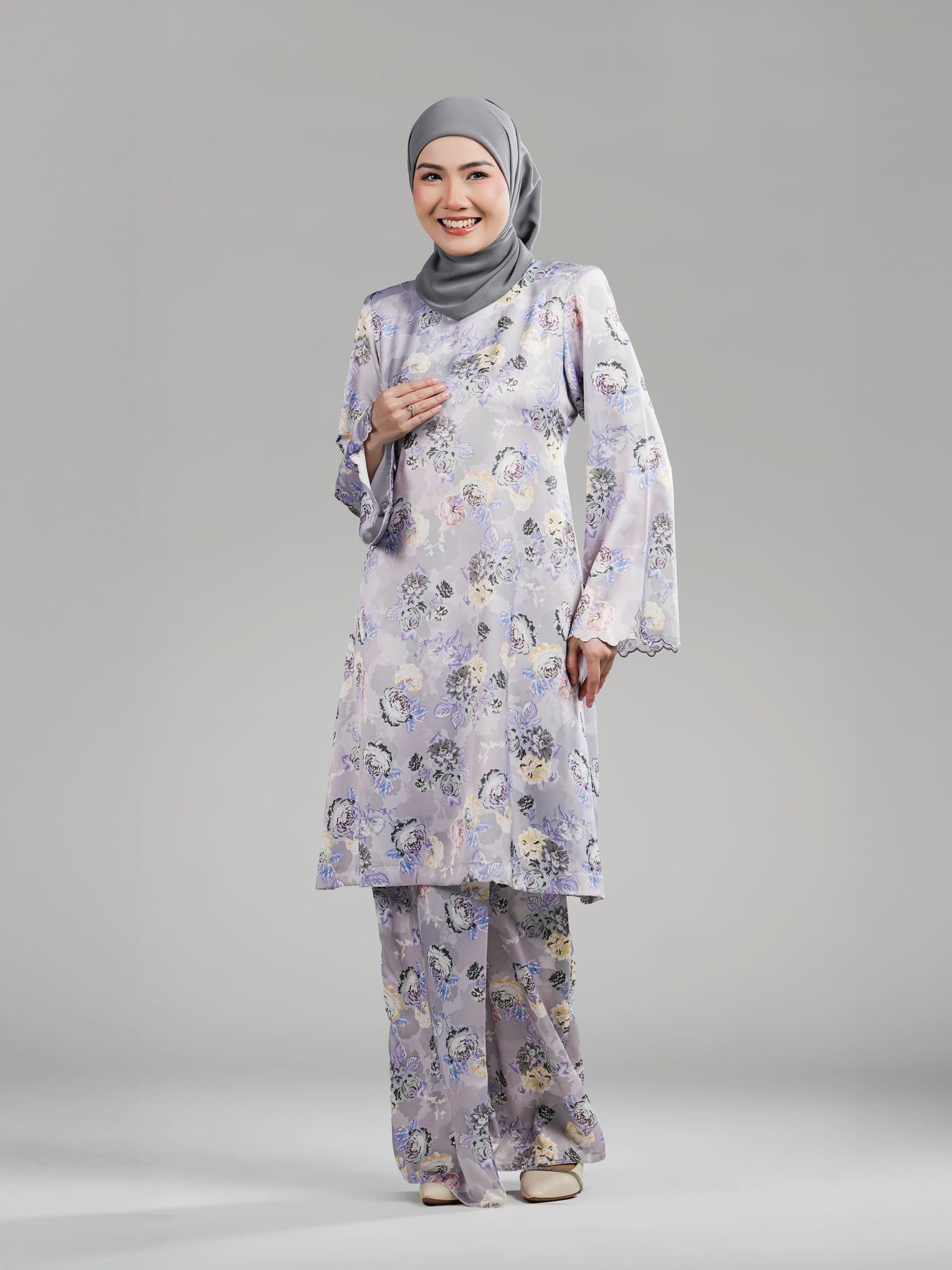 Menampilkan gaya yang anggun, moden dan berkarakter, Lady Hilden Collection Raya 2026 direka khas untuk wanita yang menggemari rekaan minimal namun tetap menyerlah. Menggunakan fabrik yang sama daripada Satin Silk Printed Premium, helaian ini menawarkan tekstur ringan, licin dan sejuk dipakai, sesuai untuk pemakaian sepanjang hari tanpa rasa tidak selesa.